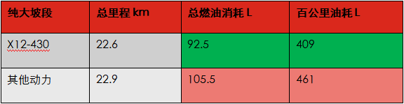 综合全程油耗结果看,X12车辆的经济性优于其他品牌动力约13%,与用户描述福康X12的欧曼自卸车普遍比其他车辆油耗省约10%相符。